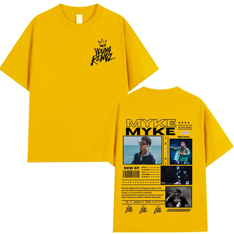 Diseños Modernos y Atractivos : Cada camiseta y sudadera presenta gráficos vibrantes y elementos visuales que capturan la esencia del estilo inconfundible de Myke Towers. Desde letras inspiradoras hasta ilustraciones impactantes, cada prenda es una celebración del talento y la creatividad.