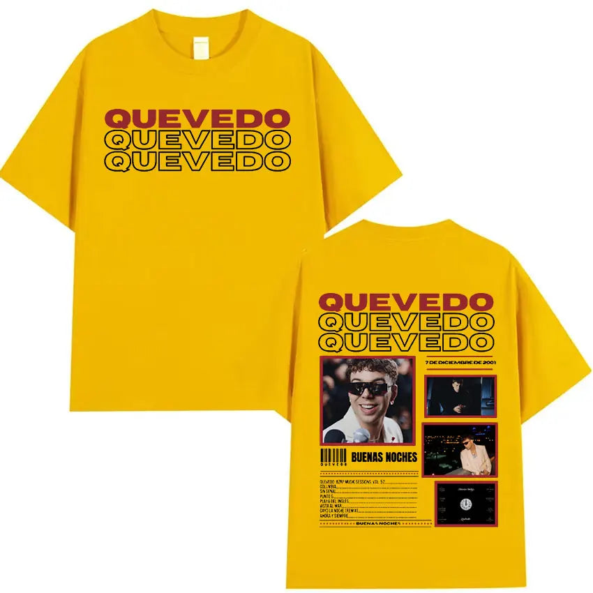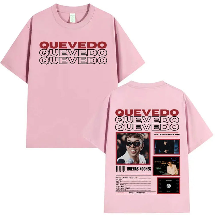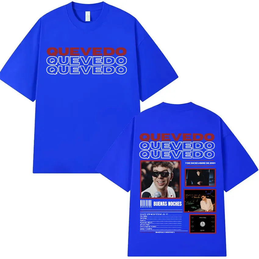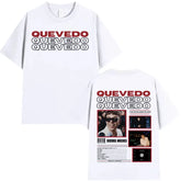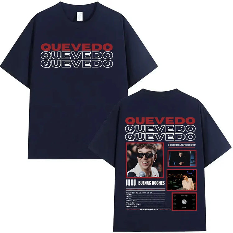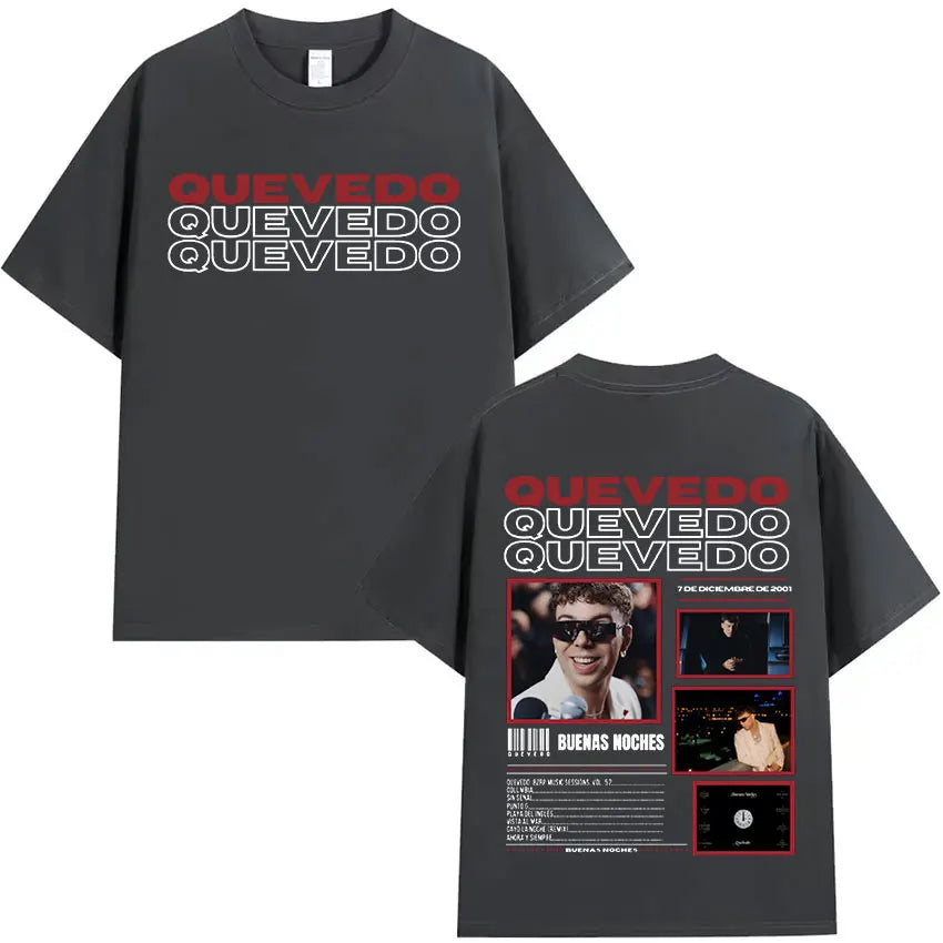 Estética Urbana con Alma: Cada prenda refleja el mood melancólico y callejero de Quevedo —gráficos con vibes nocturnas, frases que conectan con lo real y diseños que respiran barrio—. Esta colección no es solo ropa, es un manifiesto de lo que sientes pero no siempre dices.