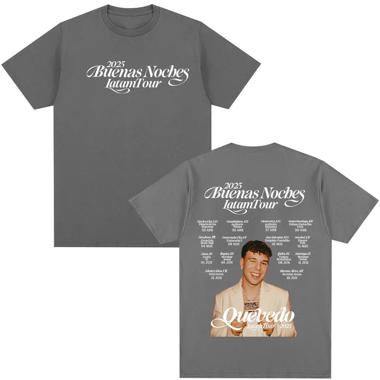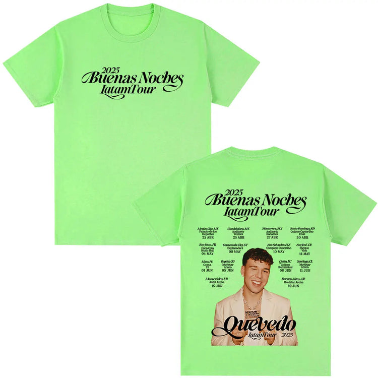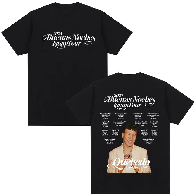 Estética Urbana con Alma: Cada prenda refleja el mood melancólico y callejero de Quevedo —gráficos con vibes nocturnas, frases que conectan con lo real y diseños que respiran barrio—. Esta colección no es solo ropa, es un manifiesto de lo que sientes pero no siempre dices.