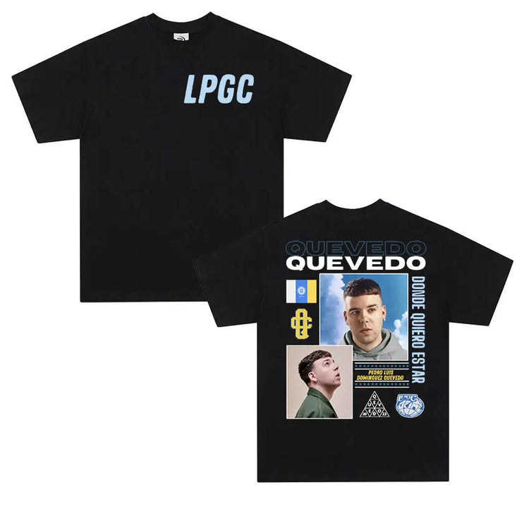 Estética Urbana con Alma: Cada prenda refleja el mood melancólico y callejero de Quevedo —gráficos con vibes nocturnas, frases que conectan con lo real y diseños que respiran barrio—. Esta colección no es solo ropa, es un manifiesto de lo que sientes pero no siempre dices.