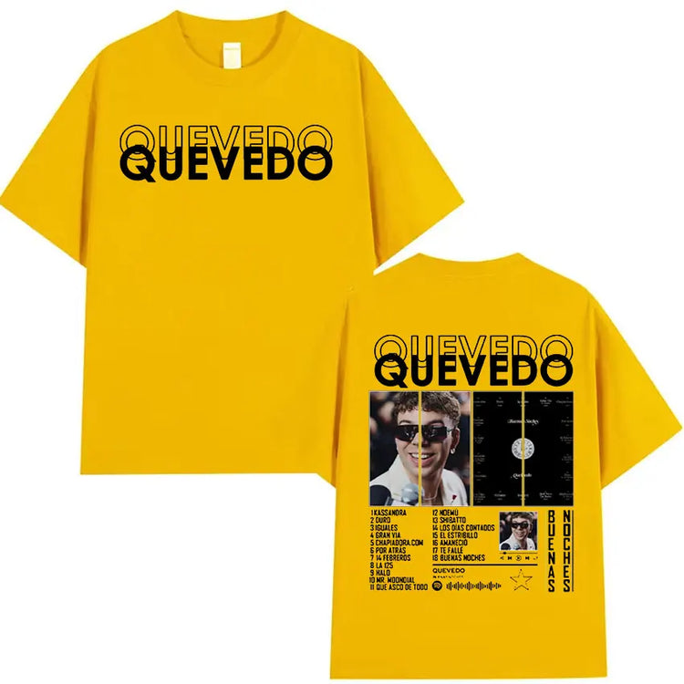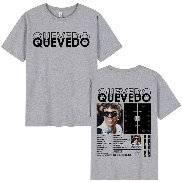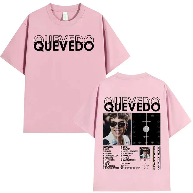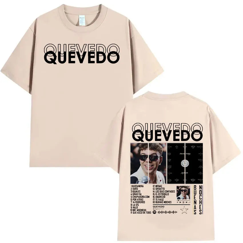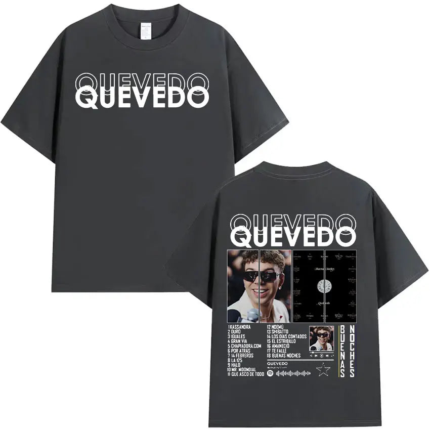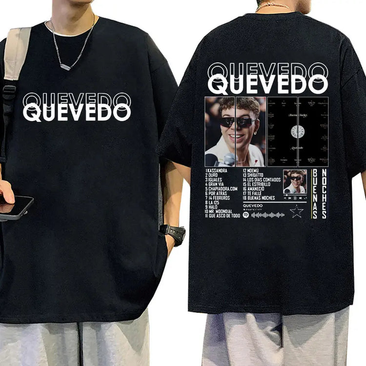 Estética Urbana con Alma: Cada prenda refleja el mood melancólico y callejero de Quevedo —gráficos con vibes nocturnas, frases que conectan con lo real y diseños que respiran barrio—. Esta colección no es solo ropa, es un manifiesto de lo que sientes pero no siempre dices.